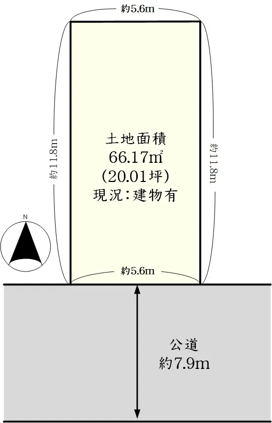 | 接道状況 | 一方道路・南7.9m(公道)接面5.6m |