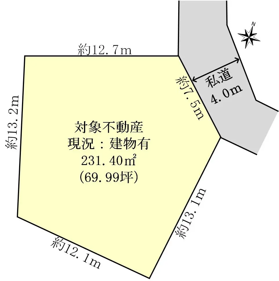 | 土地面積 | 231.40m2(約69.99坪)※公簿/他に私道負担:27.03m2あり |