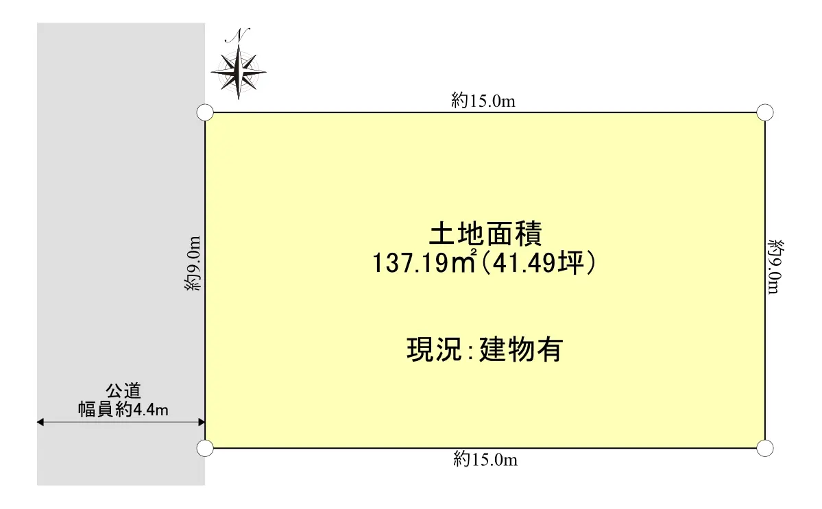 | 接道状況 | 一方道路・西4.4m(公道)接面9m |