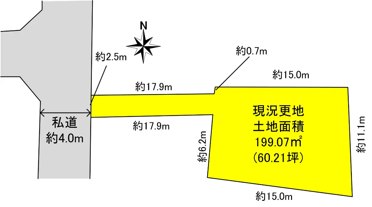 | 土地面積 | 199.07m2(約60.21坪)/路地状部分:44.84m2含む |
