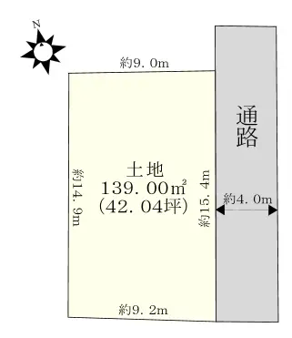 | 土地面積 | 139.00m2(約42.04坪)※公簿/他に私道負担:22.45m2あり |