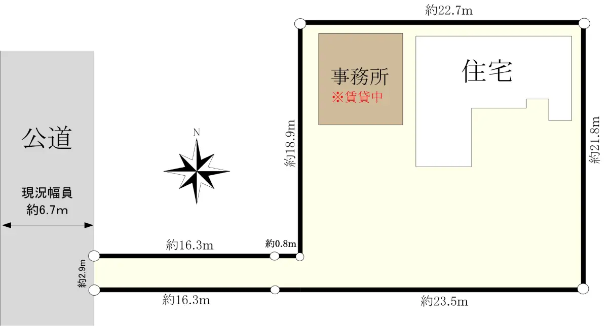 敷地内には戸建てと事務所が存しており、事務所は賃貸中です。