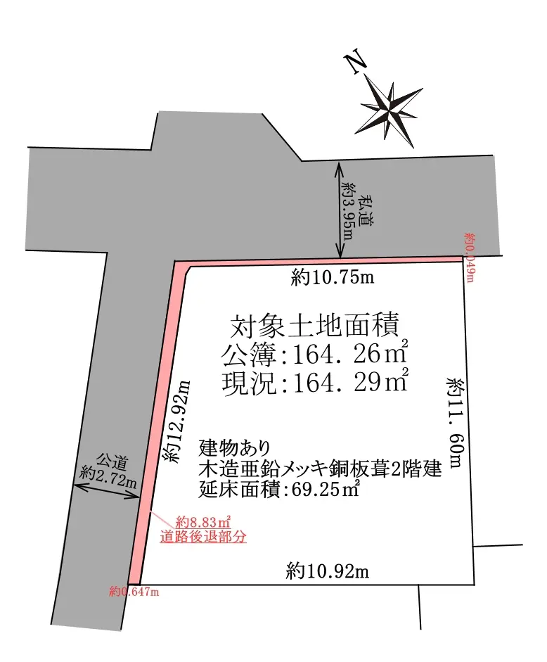 ・北西側公道約2.72m(セットバック要)