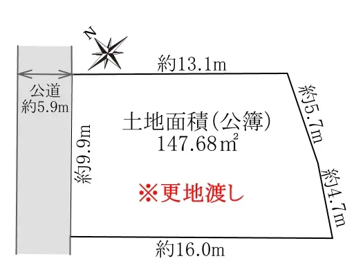 | 接道状況 | 一方道路・北西5.9m(公道)接面9.9m |