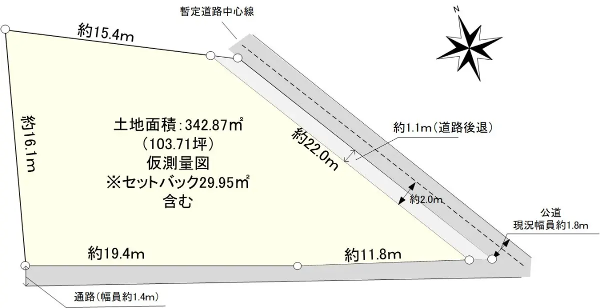 | 土地面積 | 342.87m2(約103.71坪)/セットバック:29.95m2含む |