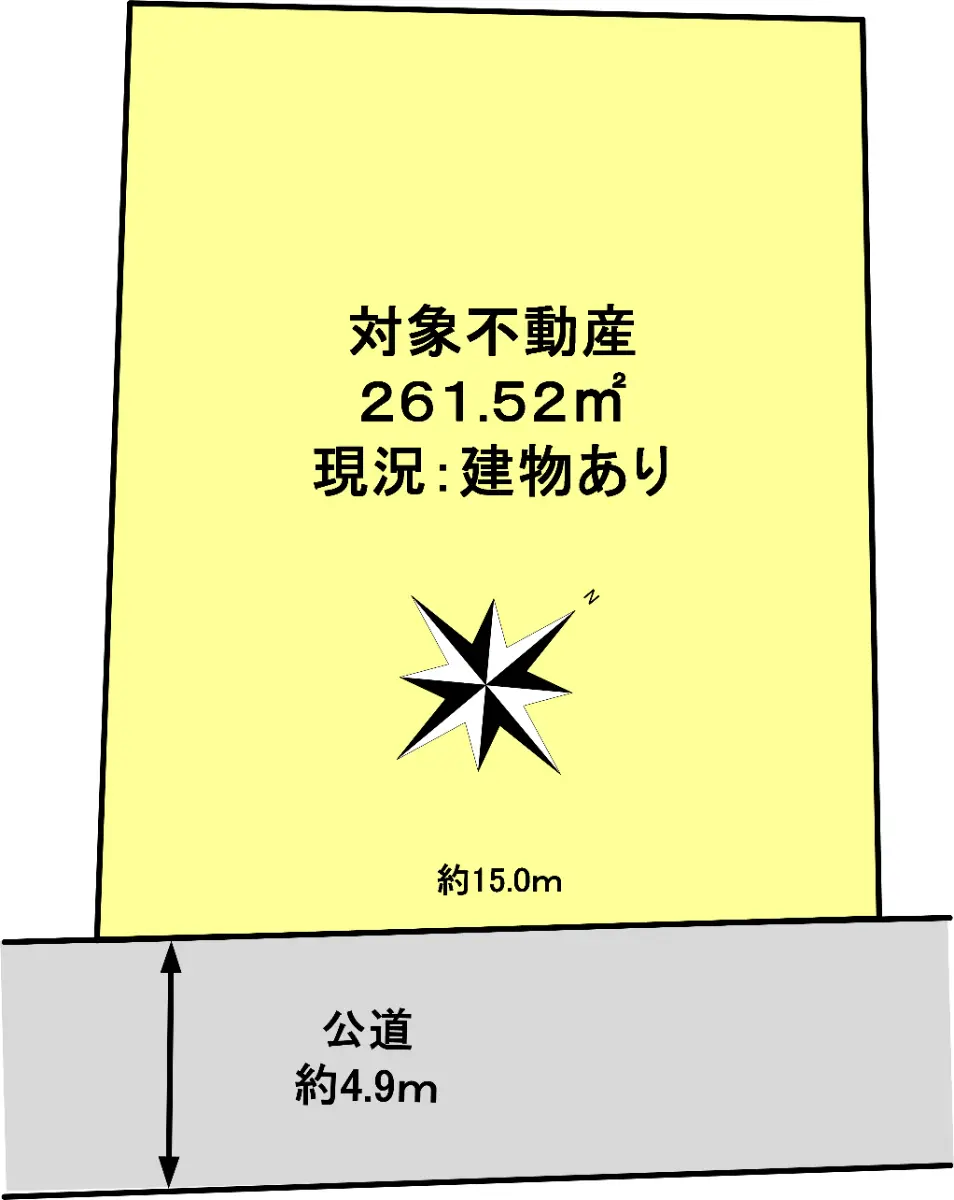 ◆道路:南東側公道 幅員:4.9m/間口:15.0m