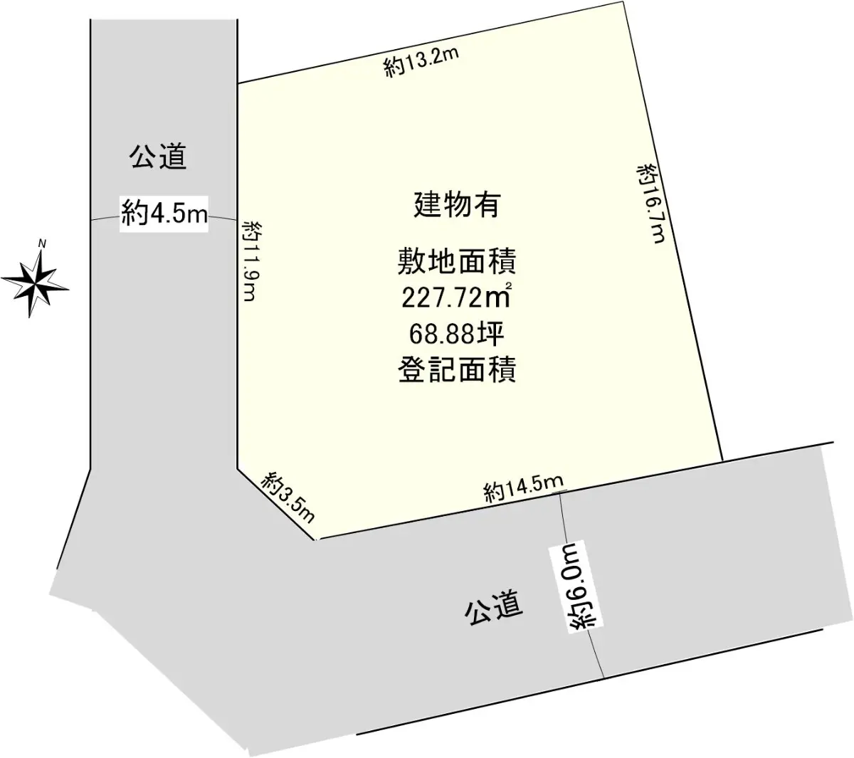 敷地面積227.72u 68.88坪(登記面積)