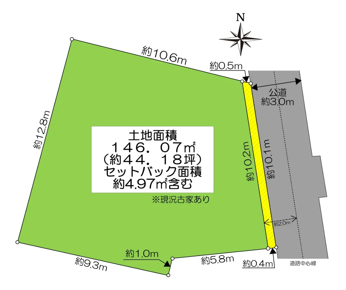 | 土地面積 | 146.07m2(約44.18坪)※公簿/セットバック:4.97m2含む |