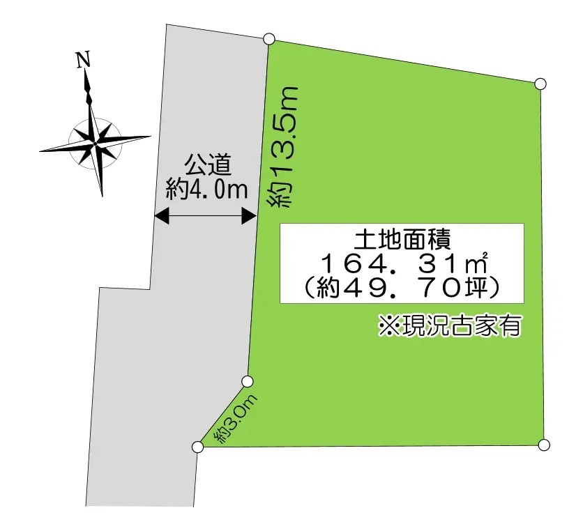 | 土地面積 | 164.31m2(約49.70坪)※公簿 |
