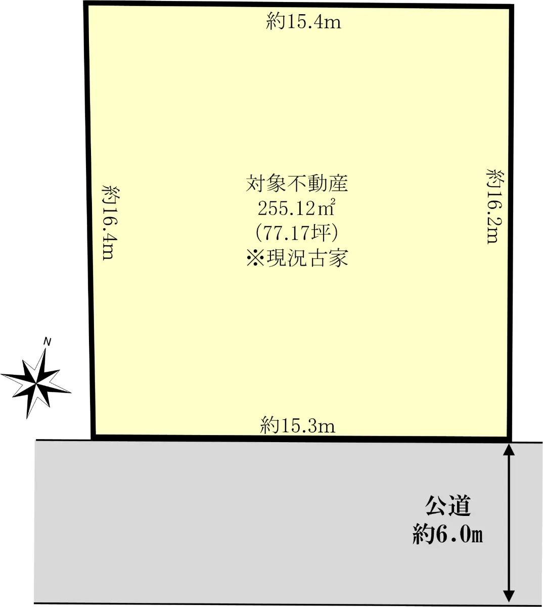 | 接道状況 | 一方道路・南6m(公道)接面15.3m |