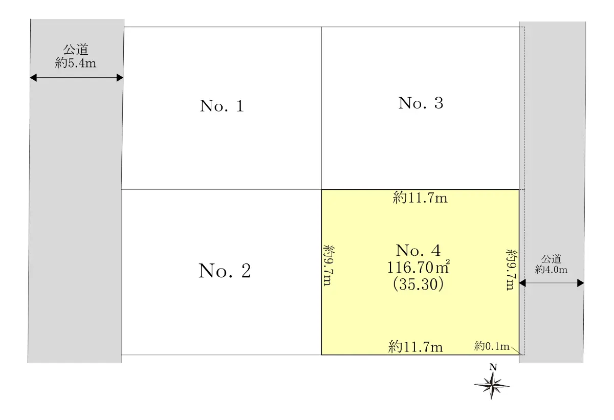 | 接道状況 | 一方道路・東4m(公道)接面9.7m |