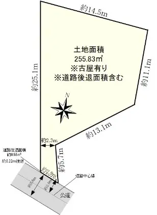 | 土地面積 | 255.83m2(約77.38坪)/セットバック:0.55m2含む |