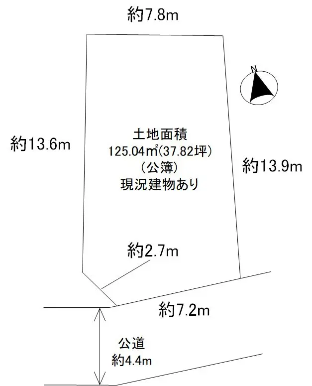 | 土地面積 | 125.04m2(約37.82坪)※公簿/他に私道負担:17.50m2あり |
