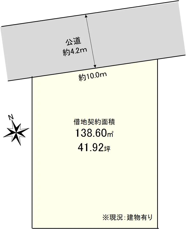 | 接道状況 | 一方道路・北4.2m(公道)接面10m |