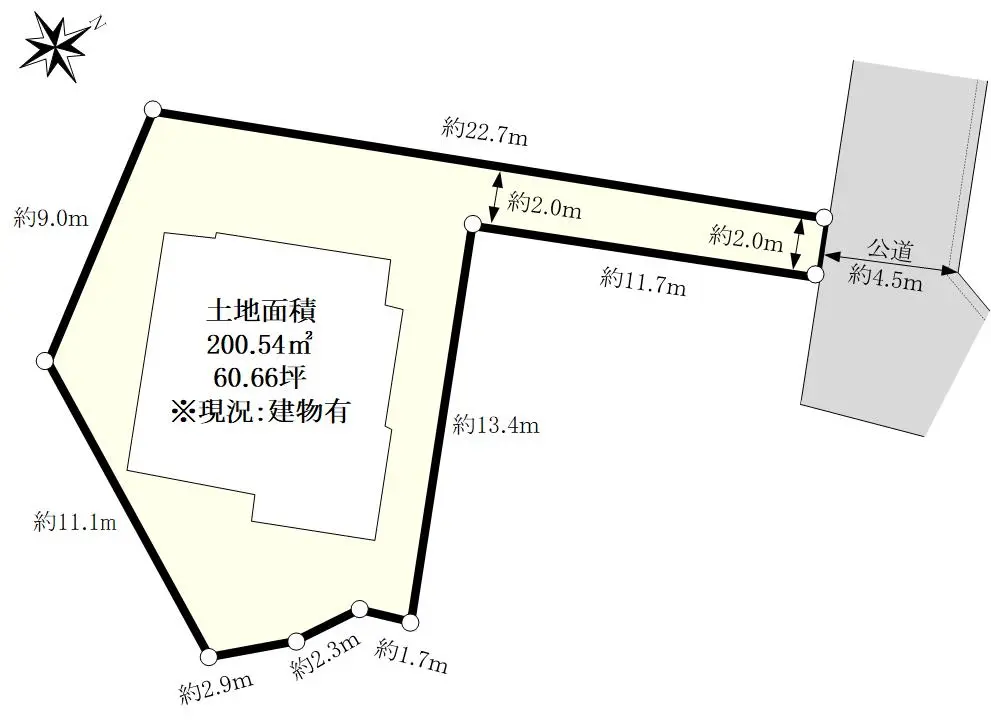 | 土地面積 | 200.54m2(約60.66坪)※公簿/路地状部分:22.00m2含む |