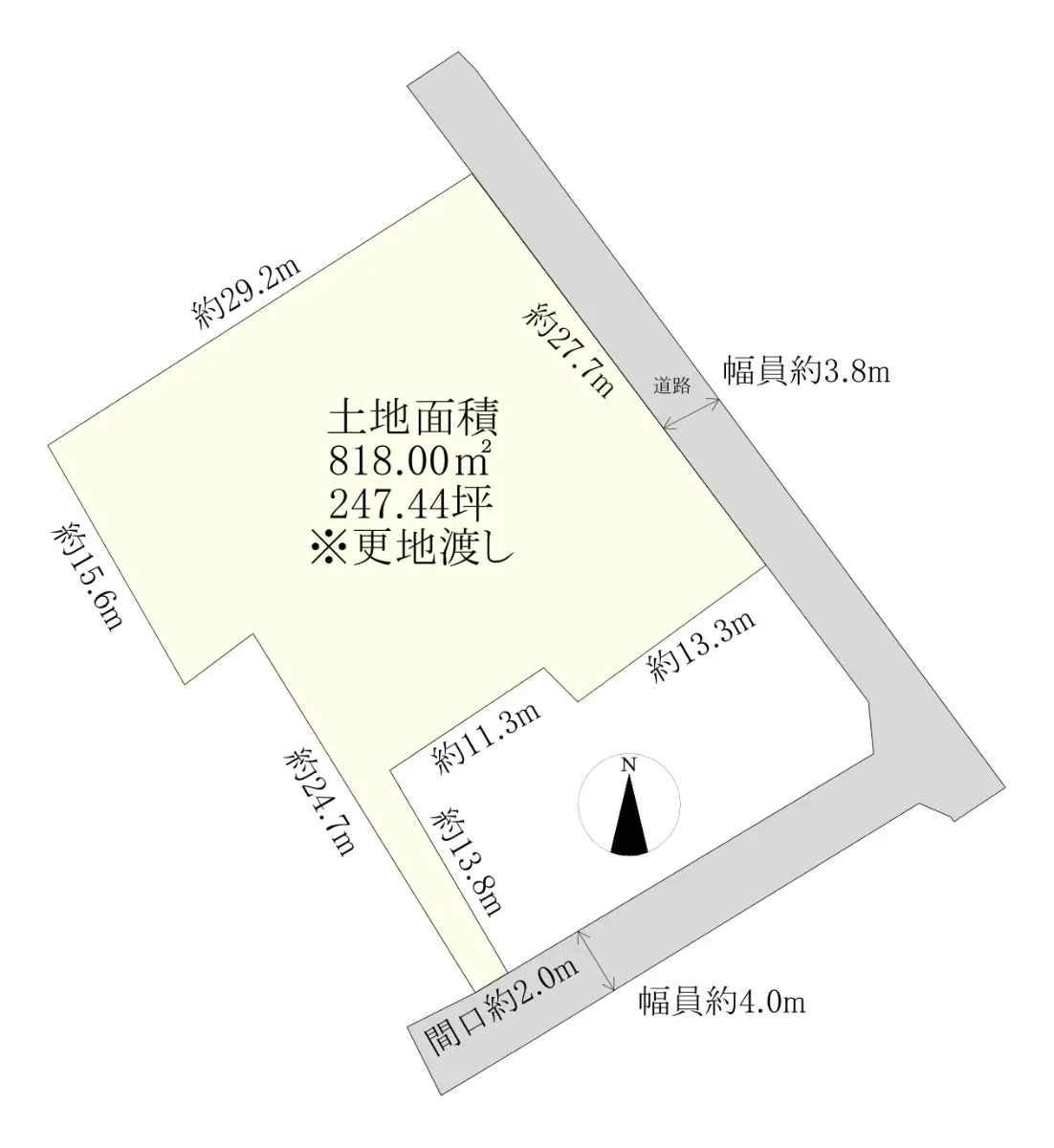 | 土地面積 | 818.00m2(約247.44坪)※公簿/路地状部分:27.36m2含む |