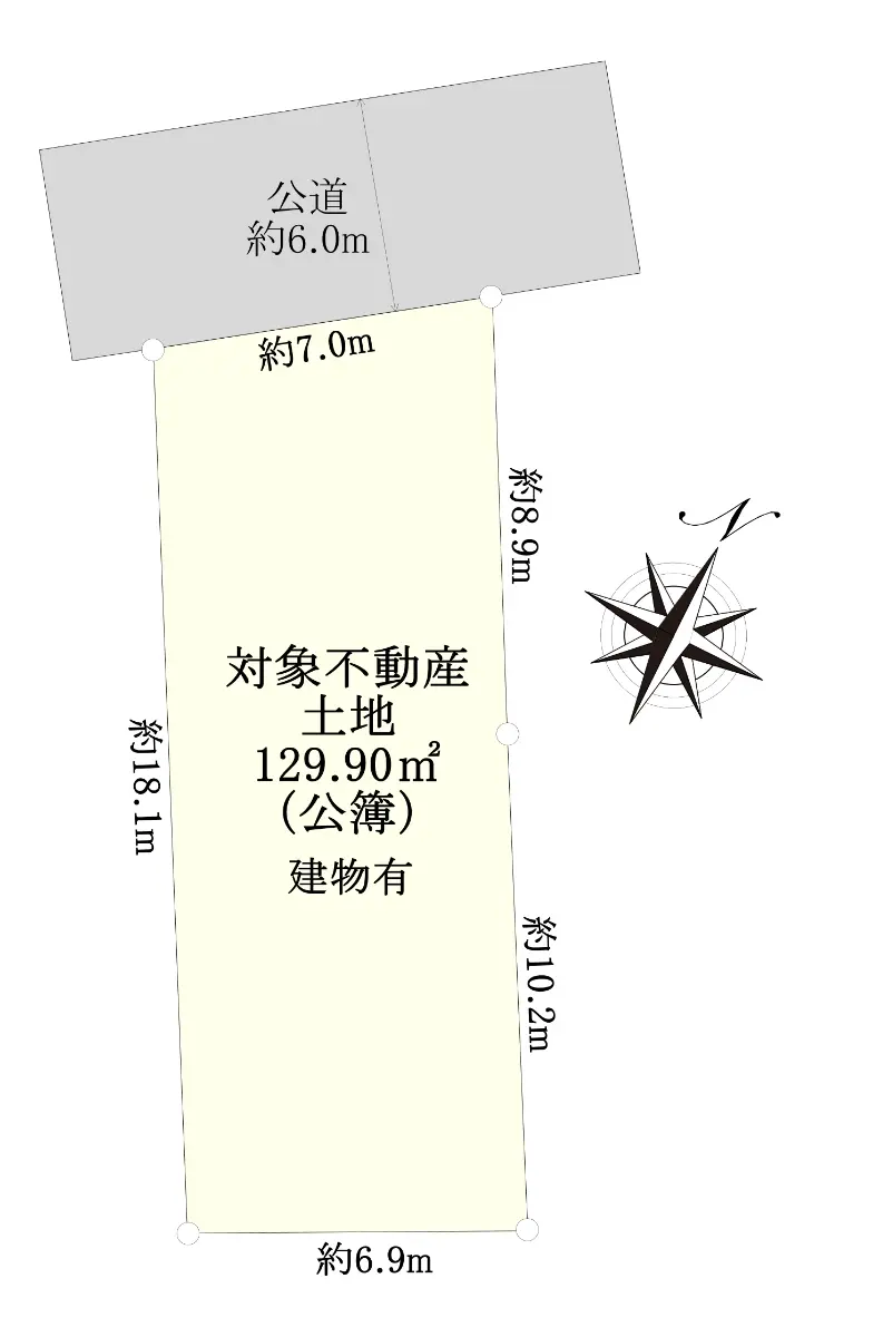| 接道状況 | 一方道路・北西6m(公道)接面7m |