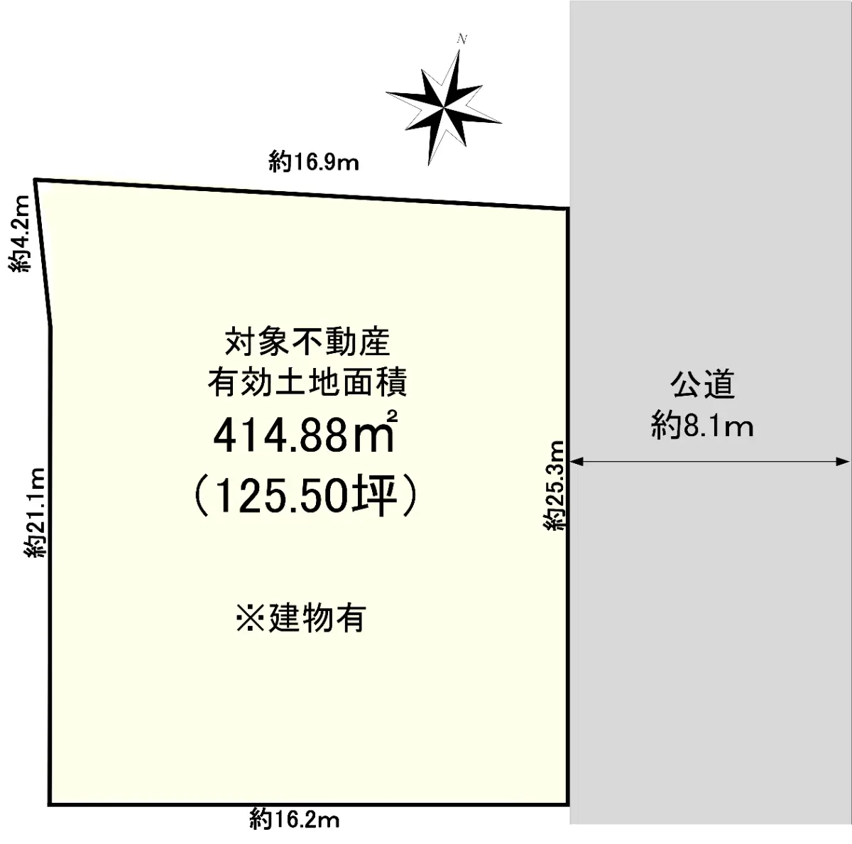 | 接道状況 | 一方道路・東8.1m(公道)接面25.3m |