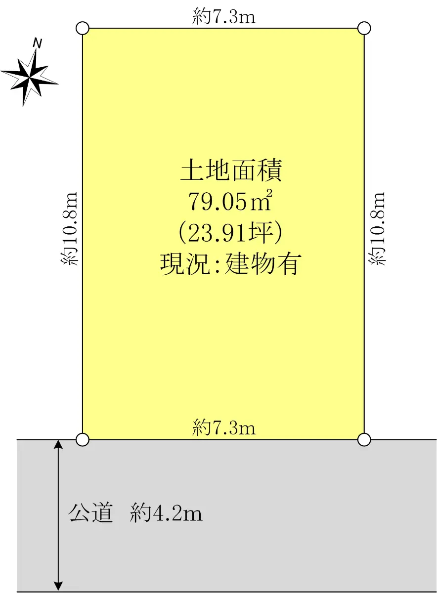 | 接道状況 | 一方道路・南4.2m(公道)接面7.3m |