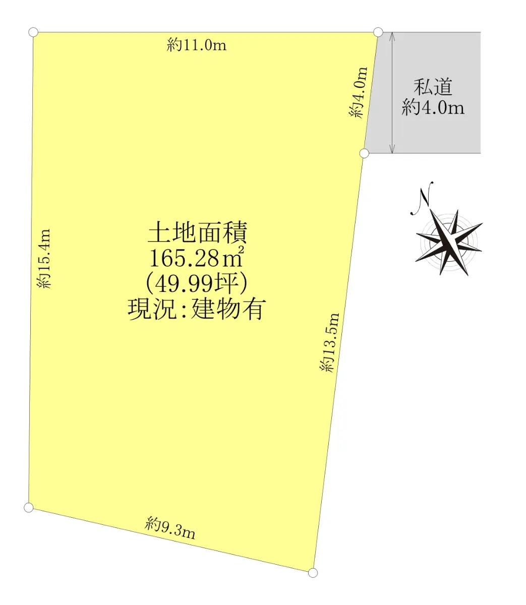 | 接道状況 | 一方道路・南東4m(私道)接面4m |