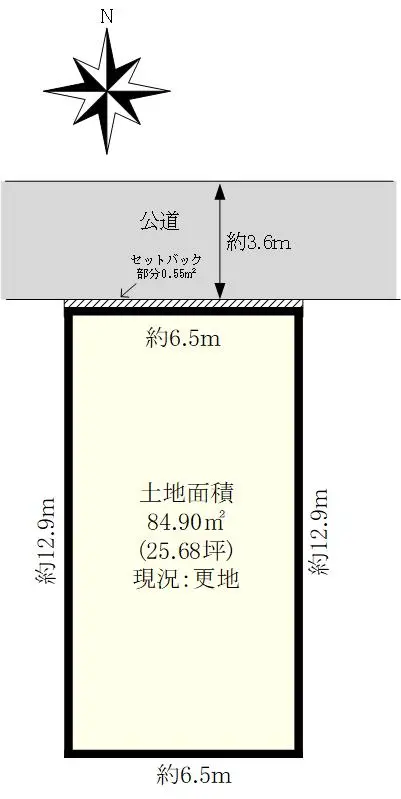 | 接道状況 | 一方道路・北3.6m(公道)接面6.5m |