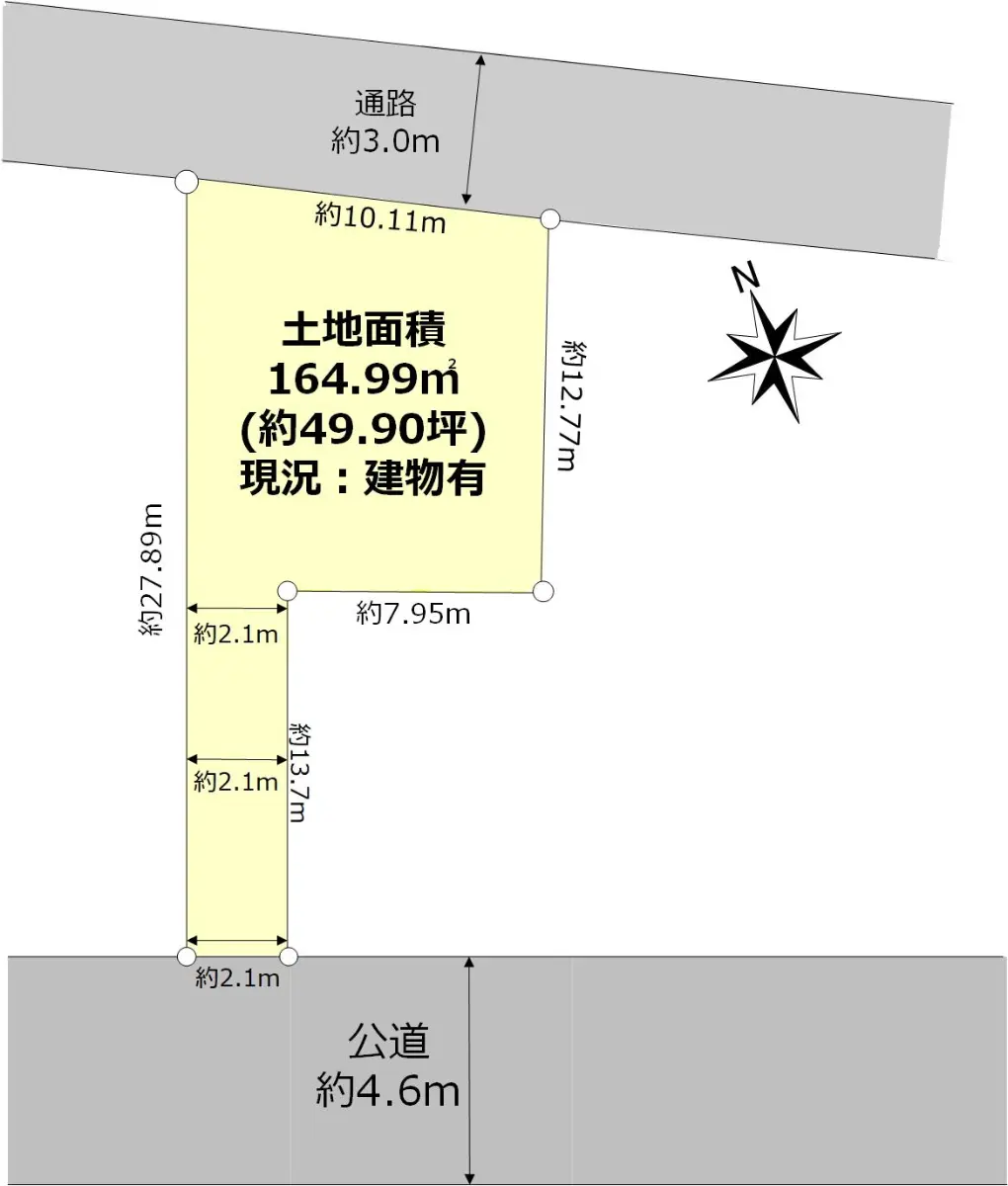 | 接道状況 | 一方道路・南西4.6m(公道)接面2.1m |