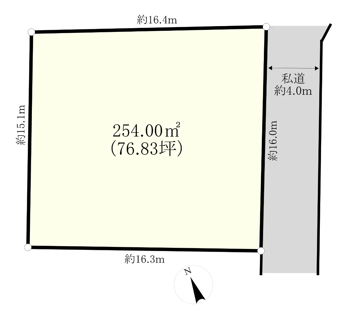 | 接道状況 | 一方道路・東4m(私道)接面16m |