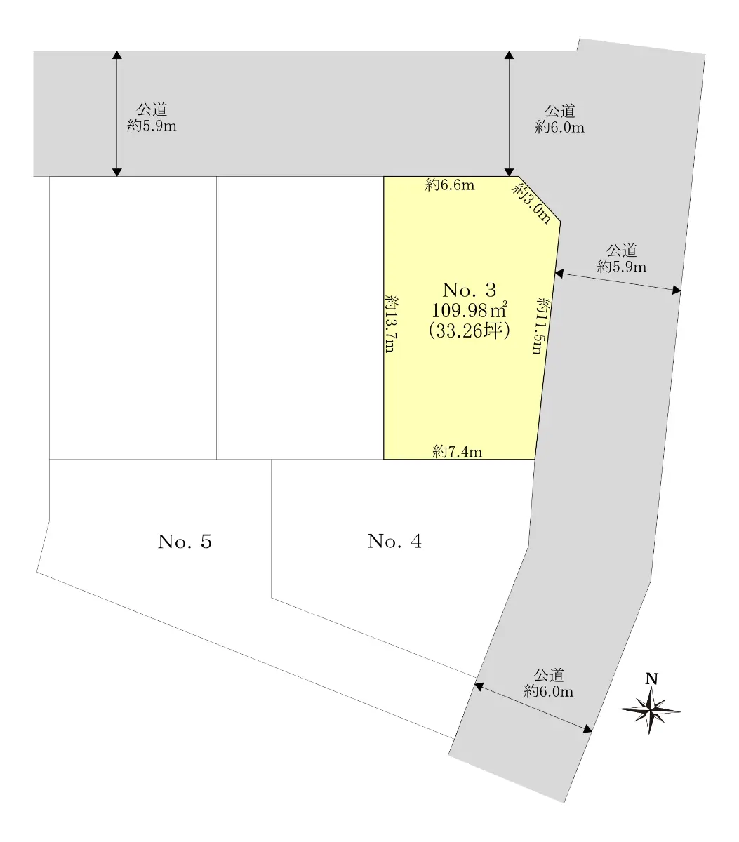 -*∴*- 東側公道 約5.9m 北側公道 約6.0m -*∴*-