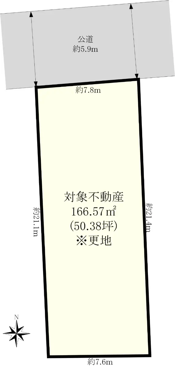 | 接道状況 | 一方道路・北5.9m(公道)接面7.8m |