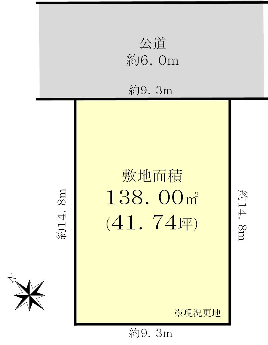 | 接道状況 | 一方道路・北東6m(公道)接面9.3m |