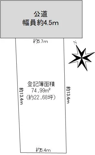 | 接道状況 | 一方道路・北東4.5m(公道)接面5.7m |