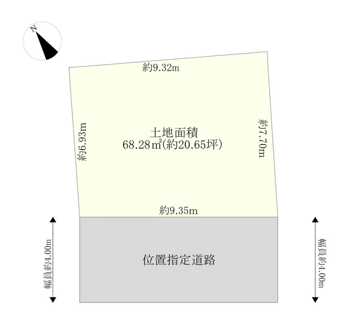 | 接道状況 | 一方道路・南4m(私道)接面9.3m |