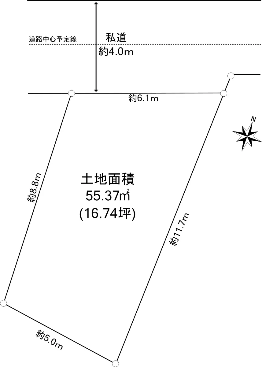| 接道状況 | 一方道路・北西4m(私道)接面6.1m |