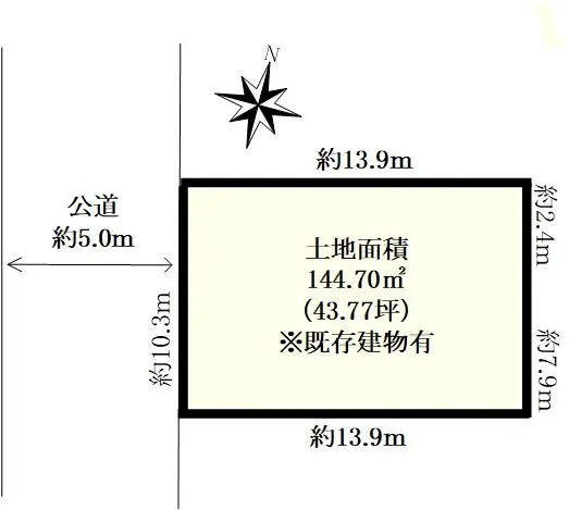 | 土地面積 | 144.70m2(約43.77坪)※公簿 |