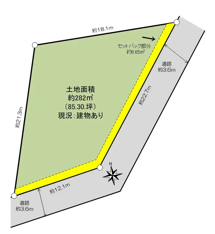 | 土地面積 | 282.38m2(約85.41坪)/セットバック:6.65m2含む |