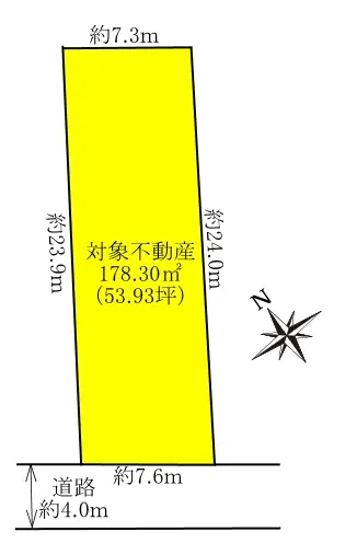 | 接道状況 | 一方道路・南西4m(公道)接面7.6m |
