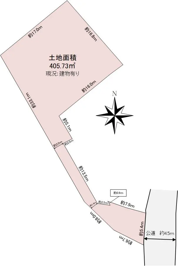 | 土地面積 | 405.73m2(約122.73坪)※公簿/路地状部分:92.70m2含む |