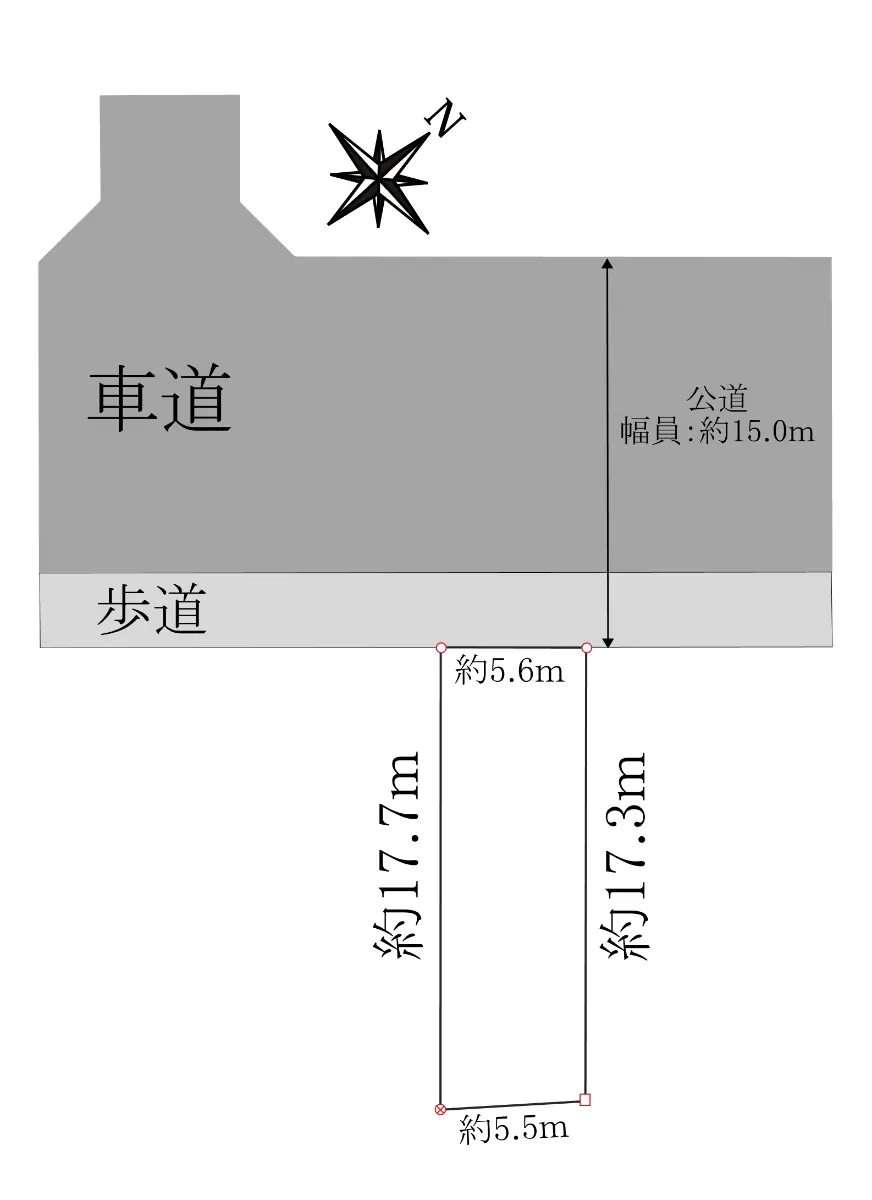 | 接道状況 | 一方道路・北西15m(公道)接面5.6m |