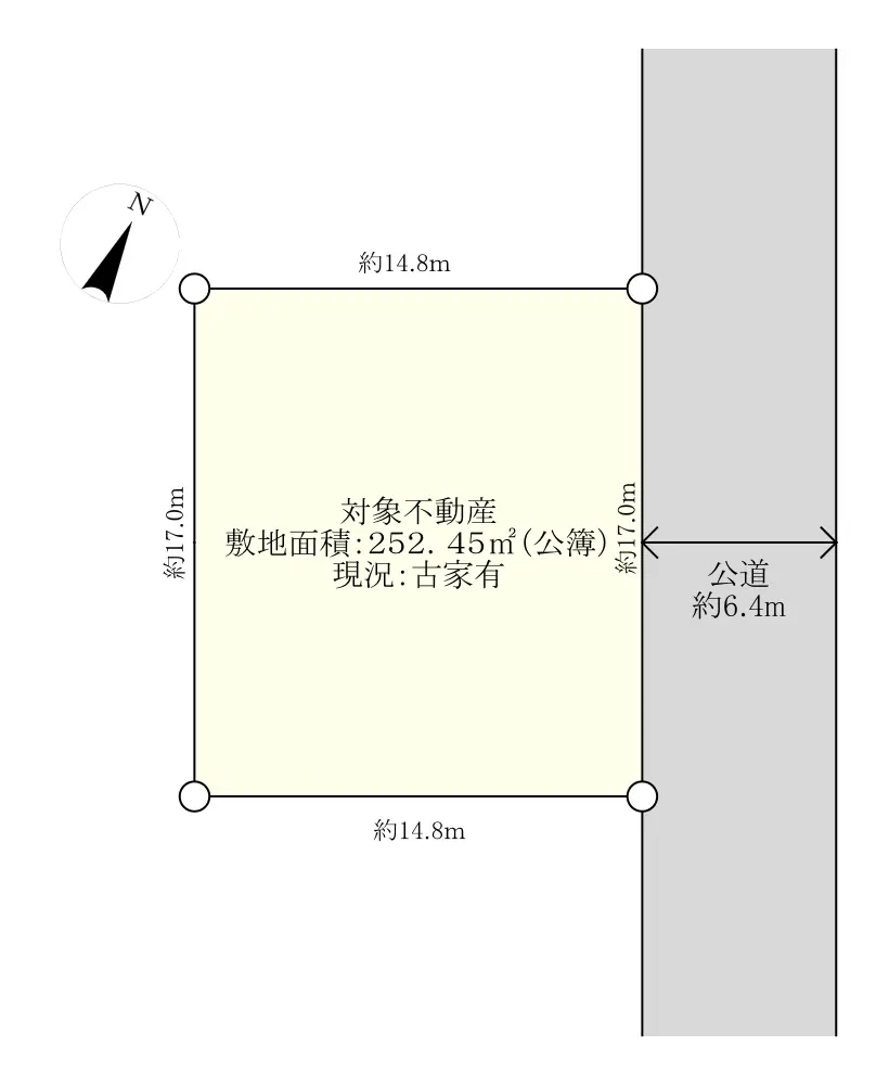 | 接道状況 | 一方道路・北東6.4m(公道)接面17m |
