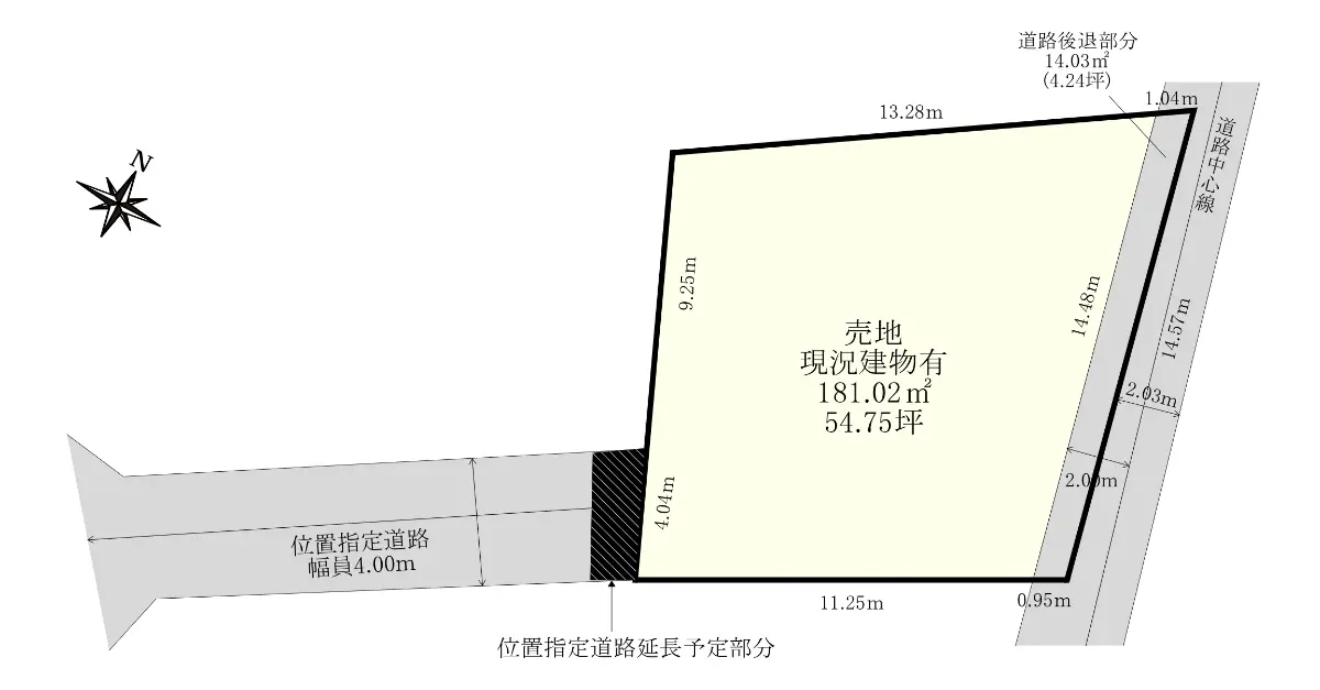 | 土地面積 | 181.02m2(約54.75坪)/セットバック:14.03m2含む/他に私道負担:26.00m2あり |