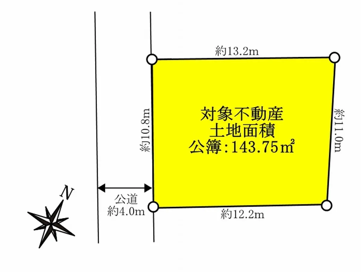 | 接道状況 | 一方道路・南西4m(公道)接面10.8m |