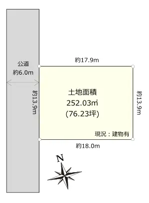 | 接道状況 | 一方道路・西6m(公道)接面13.9m |