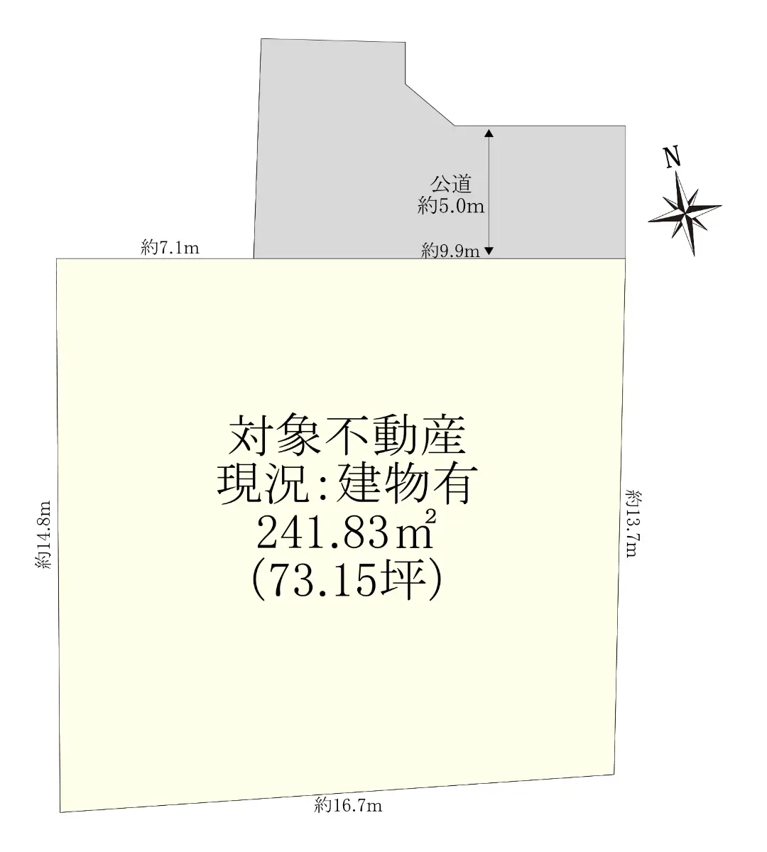 土地面積241.83u(73.15坪)の整形地です。