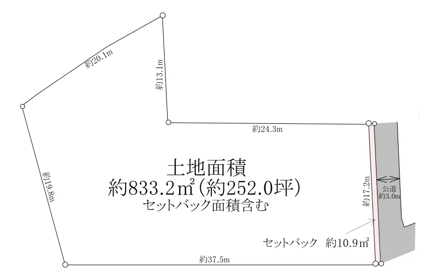 | 土地面積 | 833.27m2(約252.06坪)/セットバック:11.00m2含む |
