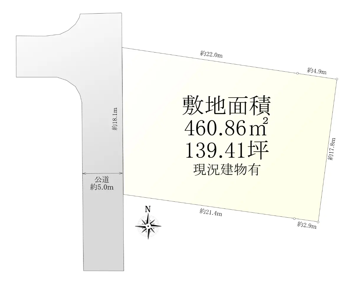 | 土地面積 | 460.86m2(約139.41坪)※公簿 |