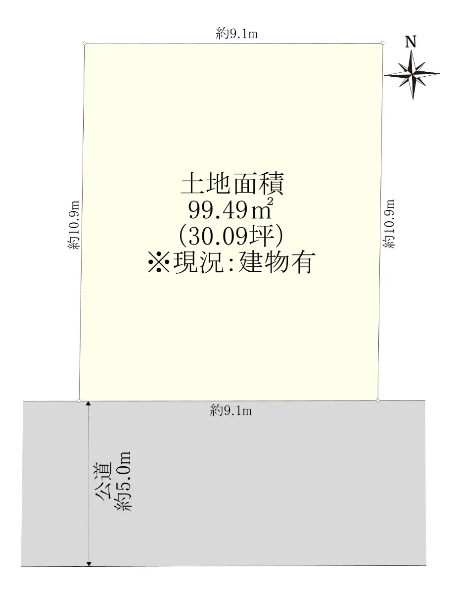 | 接道状況 | 一方道路・南5m(公道)接面9.1m |
