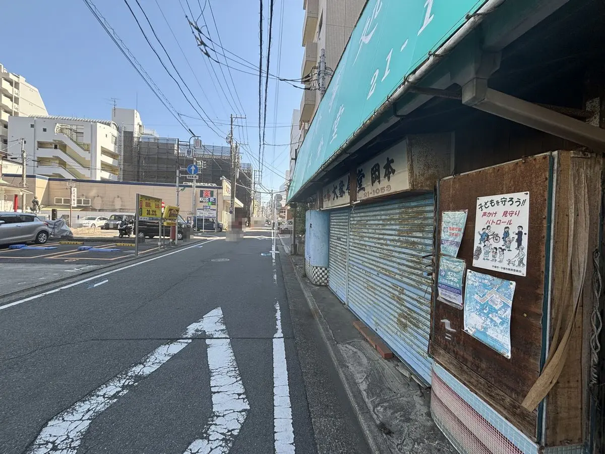 ビルや店舗の立ち並ぶ人通りの多い通りに面しており、飲食店等におすすめの立地です。