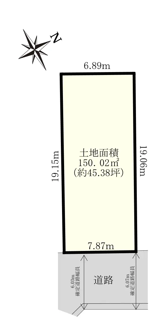| 接道状況 | 一方道路・南東6m(公道)接面8m |