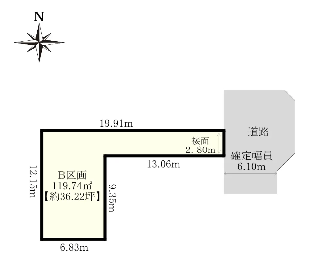 | 接道状況 | 一方道路・東6.1m(公道)接面2.8m |