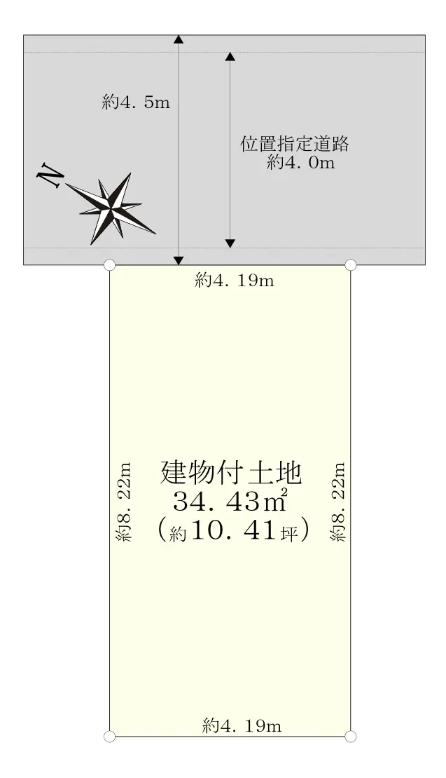 | 土地面積 | 34.43m2(約10.41坪)※公簿/他に私道負担:10.08m2あり |